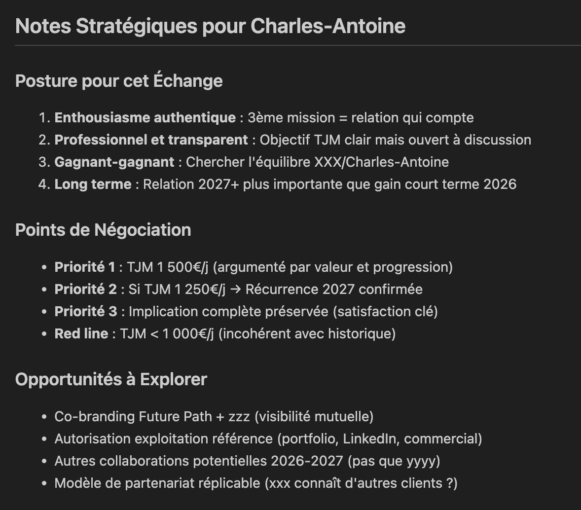 Titre 6 : La course vers le bas Si BasRéel [Claude n’a pas du tout vu la transposition humoristique ici] impose ça, les autres suivront (mouvement de meute). Les premiers consultants qui accepteront des TJM réduits créeront un précédent. Dans 18 mois, ce sera la norme. Et là, le vrai problème : comment différencier ton expertise quand tout le monde prétendra “être augmenté par l’IA” ?