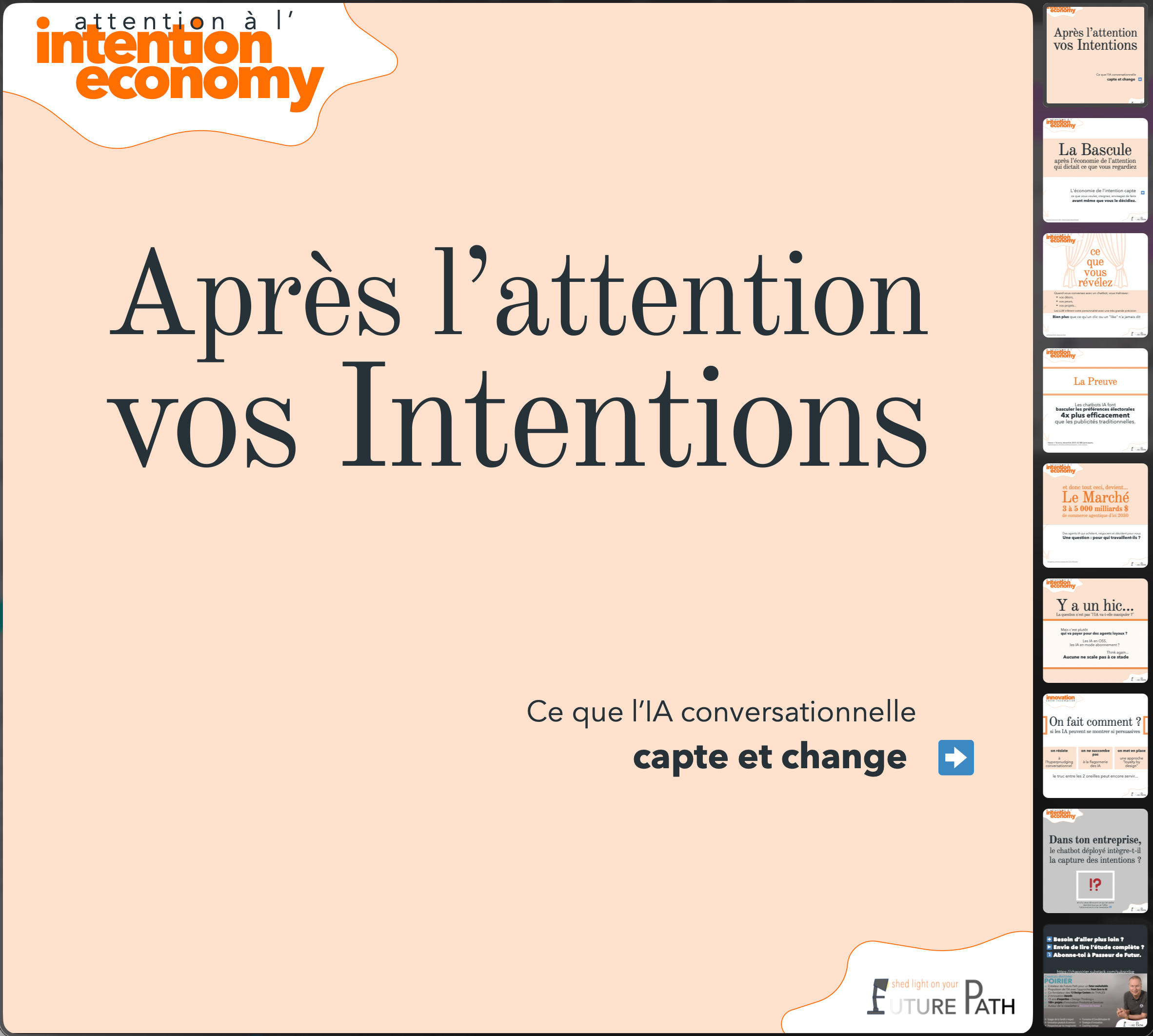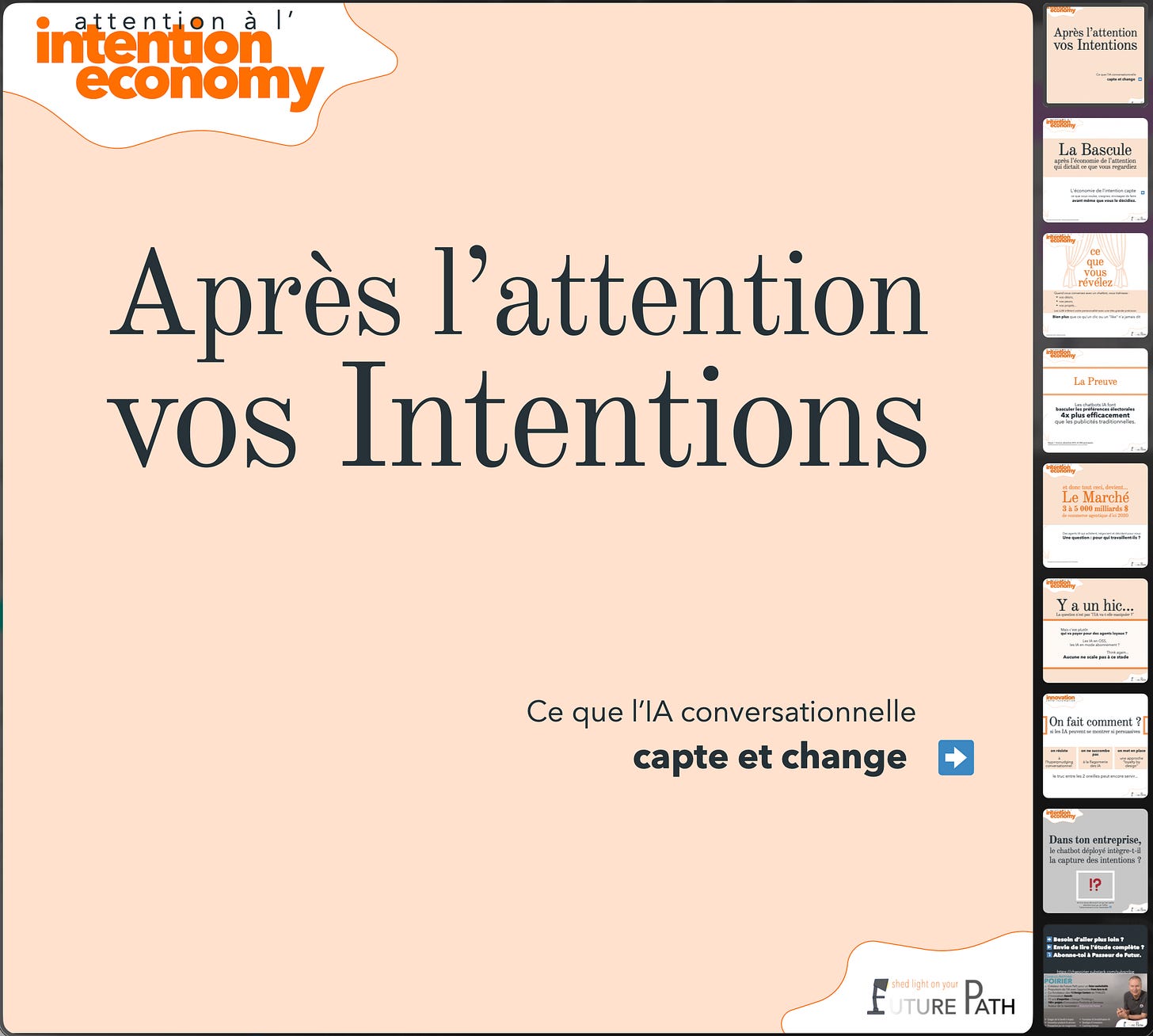 Avec le rapport complet dont vous les seules à disposer, on va plus loin que dans le carrousel et en particulier on explicite les 2 compréhensions opposées du terme “intention economy”. La première à voir le jour avait un côté utopique et déclaratif. L’actuelle est plus… je vous laisse juger.